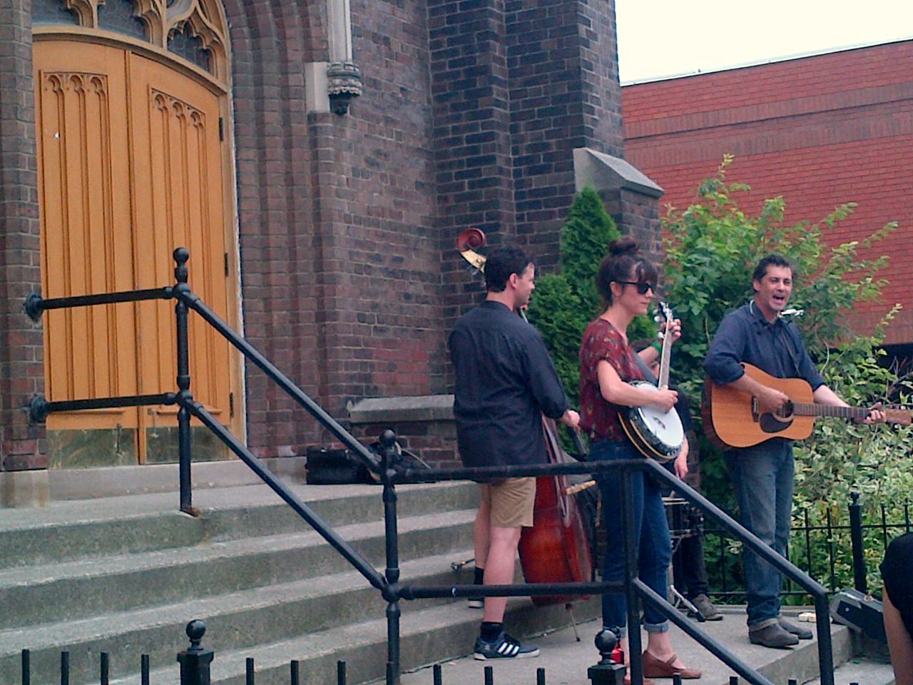 Next stop was a theatre performance inside Glory Hole Doughnuts. A brief aside, have you had these doughnuts? OH. MAN. Before the performance we had the absolute delight of partaking in an orange creamsicle doughnut and it was one of the best doughnuts I've ever had. Bring a friend, they're HUGE. The theatre piece was an excerpt from "Amusement" performed by Nobody's Business Theatre. It was quite good, very funny and staged well considering we were inside a small storefront. After the show ended we tumbled outside to catch the end of a lovely musical performance by folk-country band Local 164 who were playing on the steps outside Our Lady of Lebanon church.